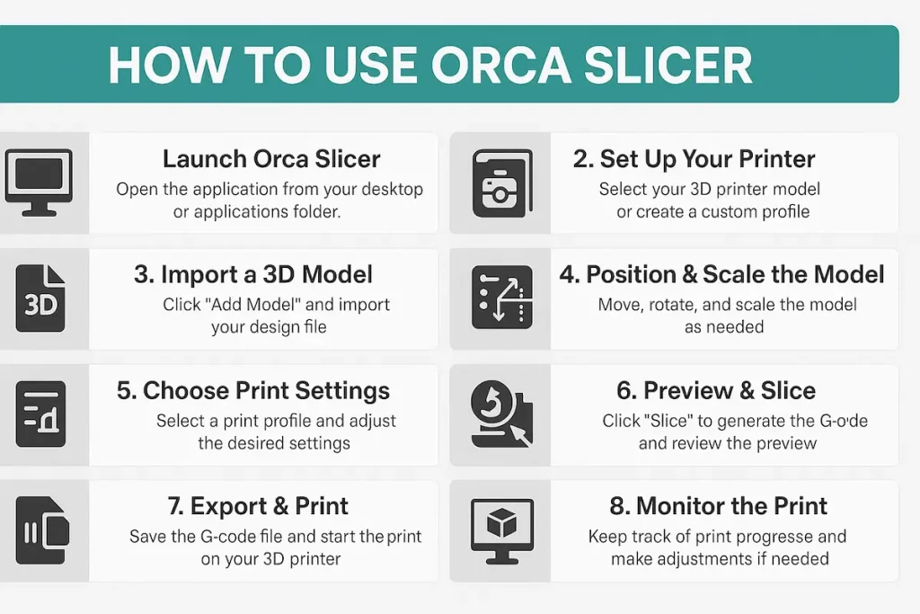 Orca Slicer is designed to make 3D printing easier for both beginners and advanced users. Follow this step-by-step guide to get started with your first print: